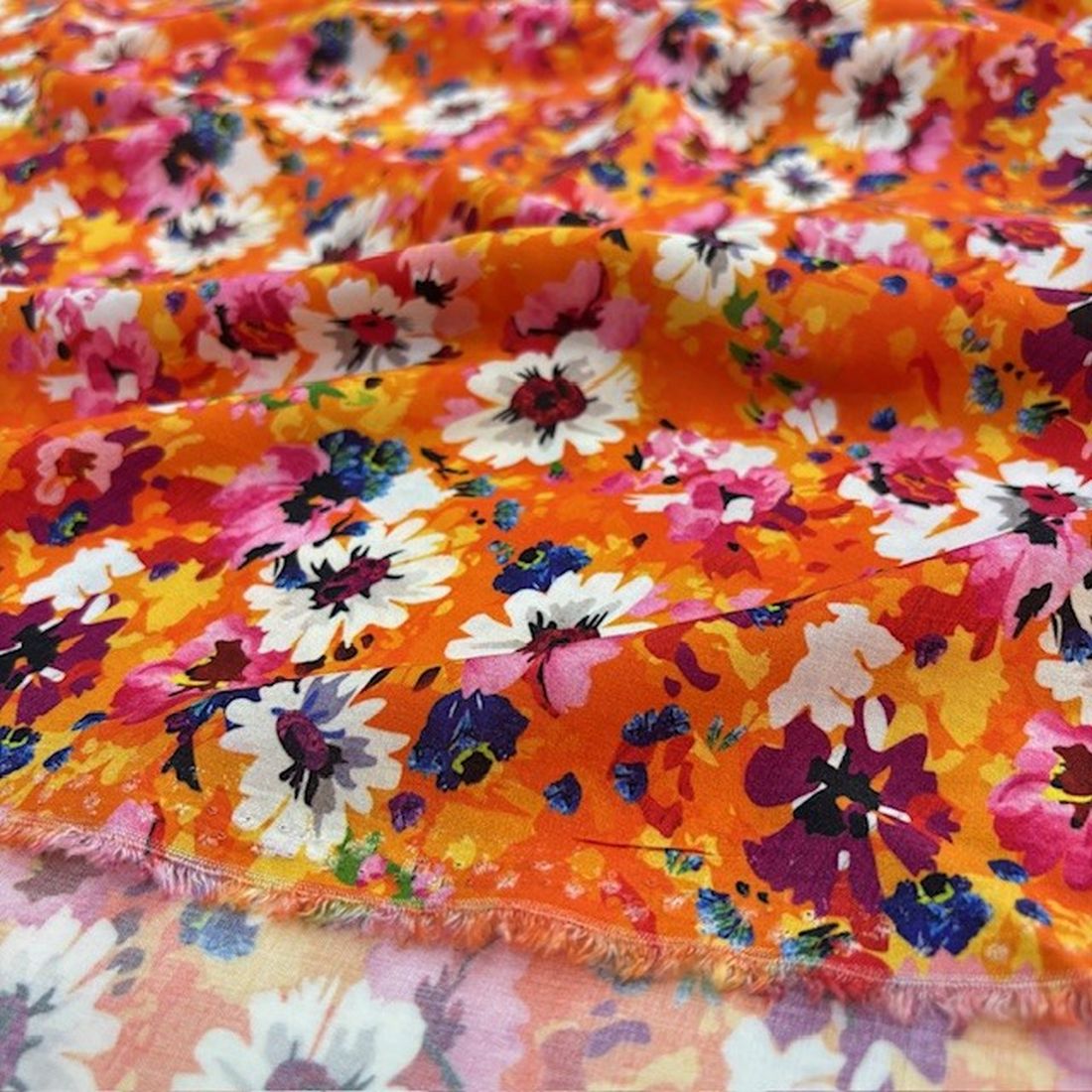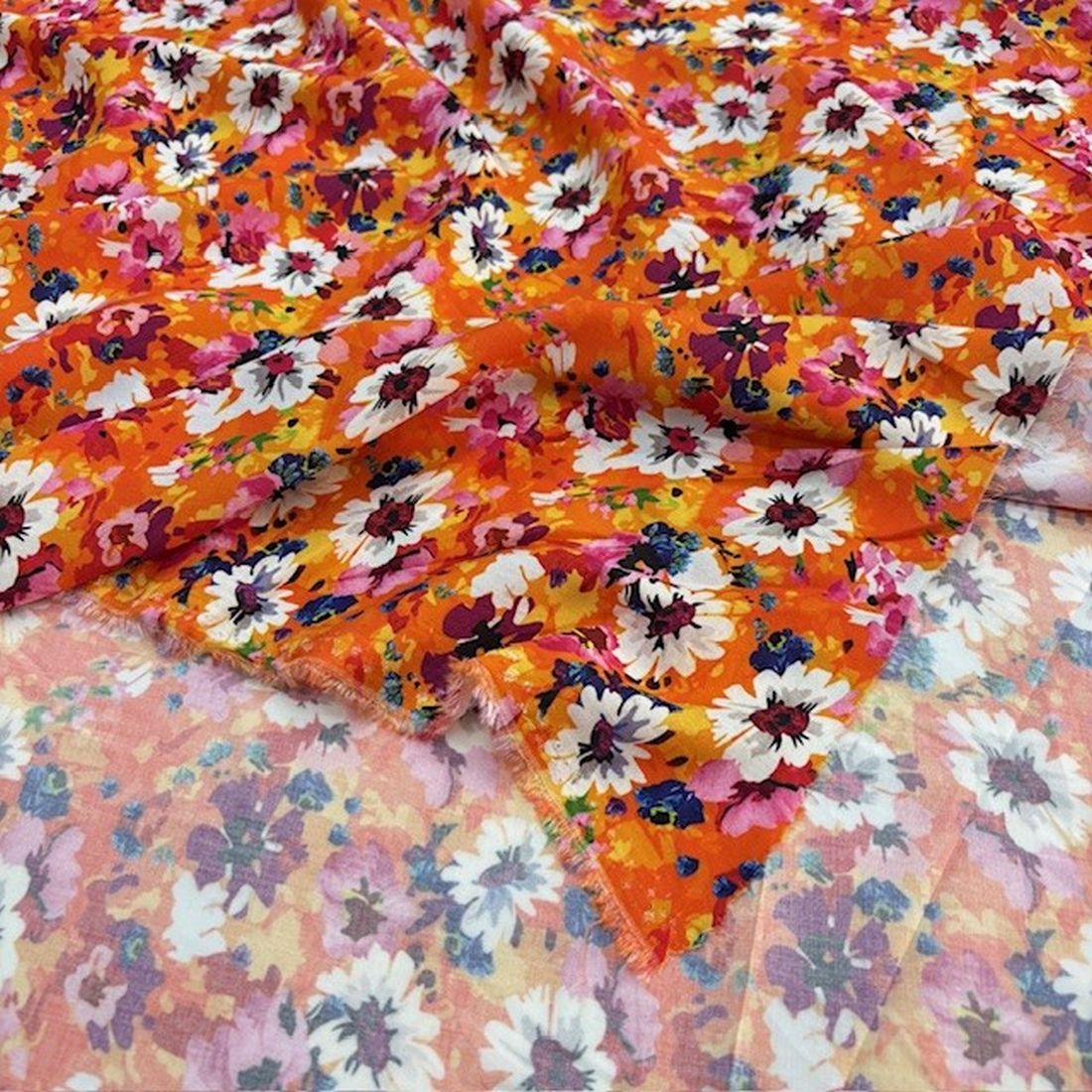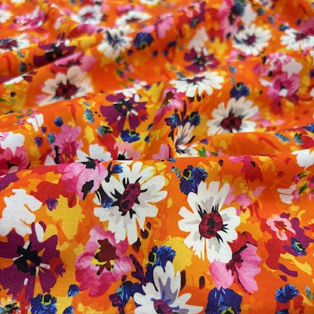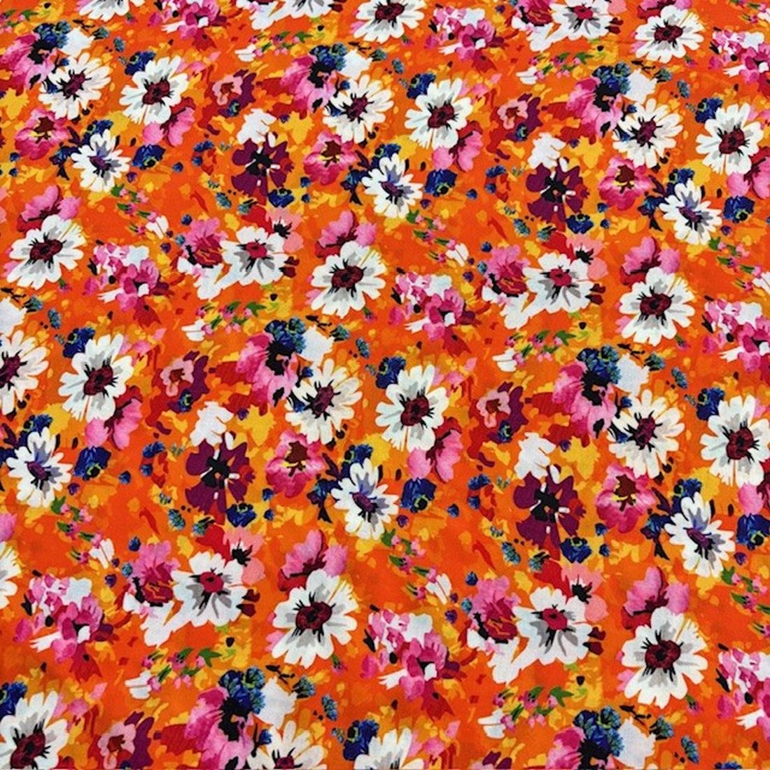 Renkli Çiçekli Desenli Viskon Kumaş YVZ