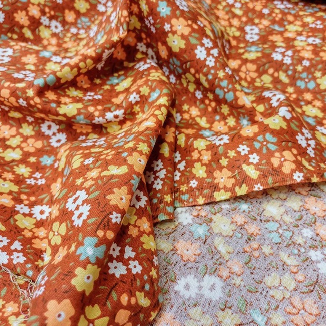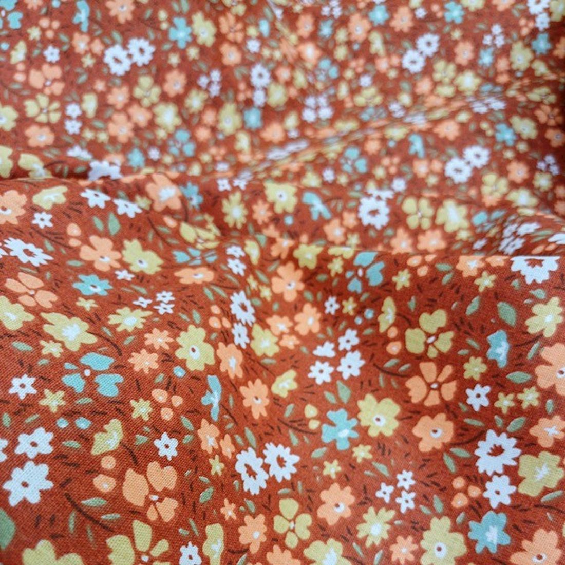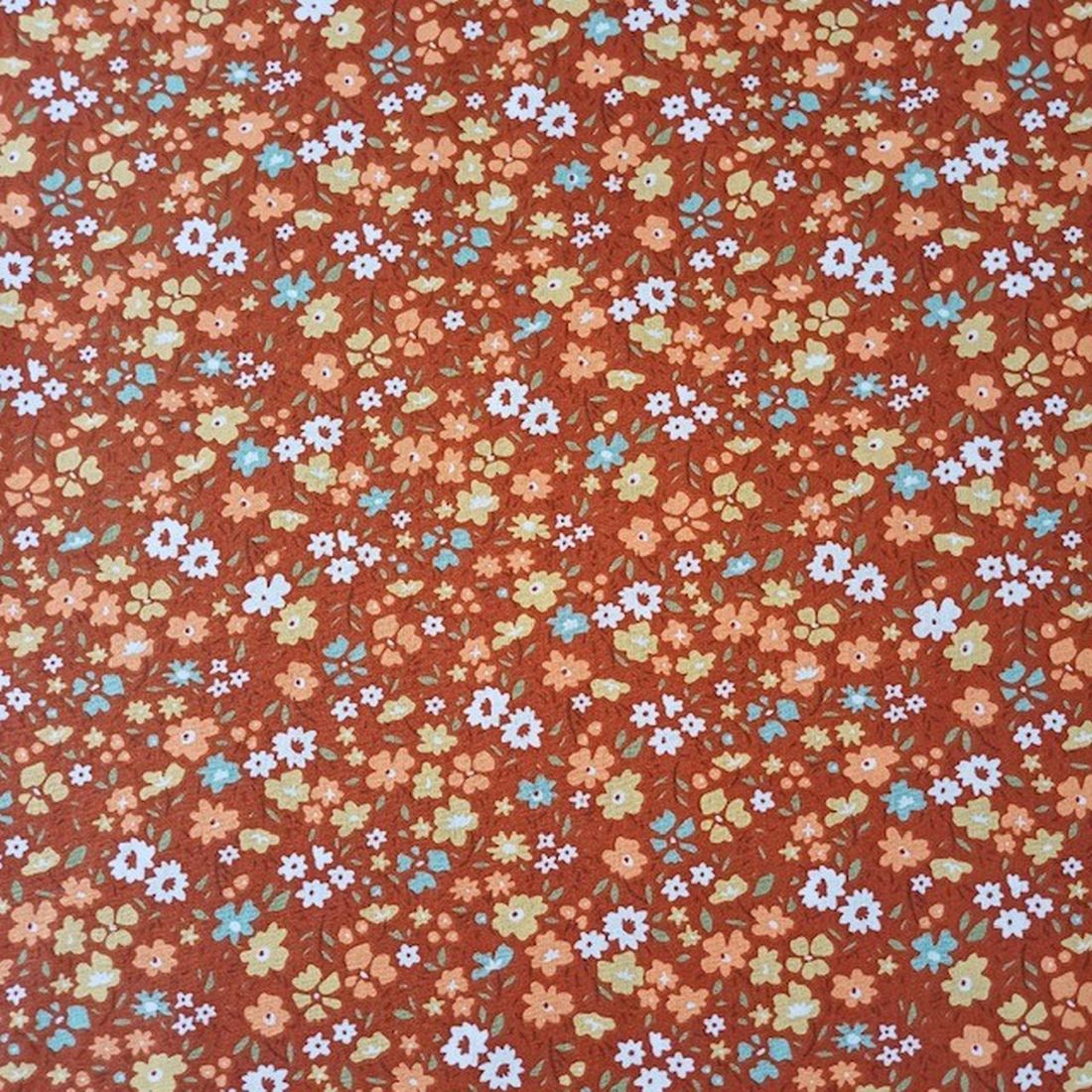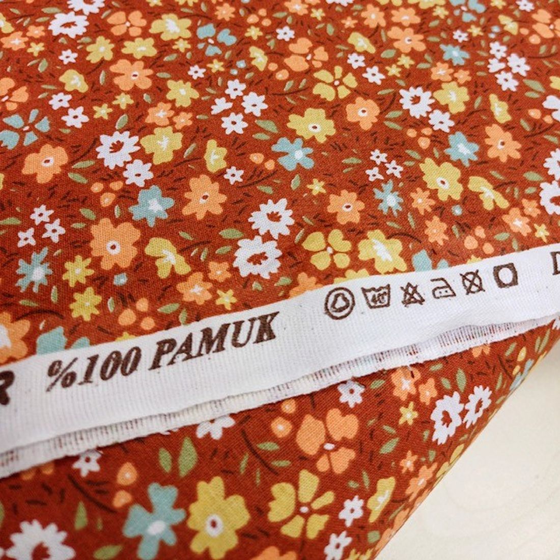 Kiremit Çıtır Çiçekli Poplin Kumaş AYT