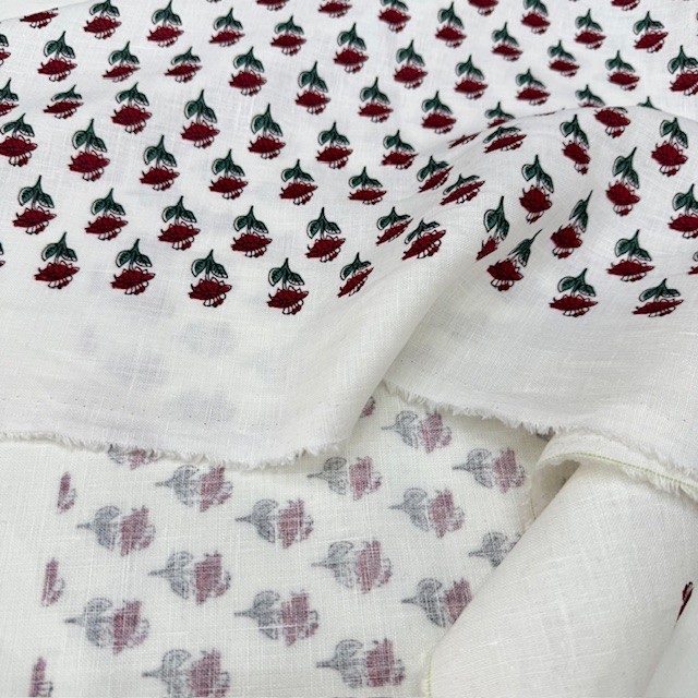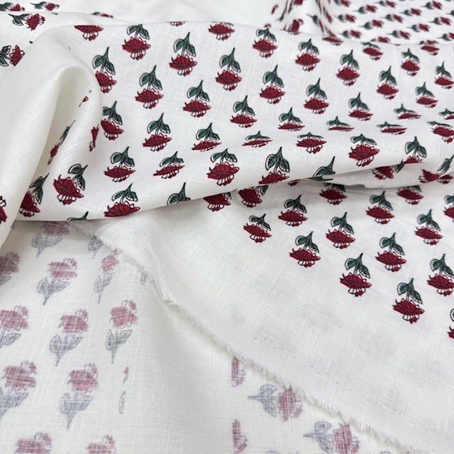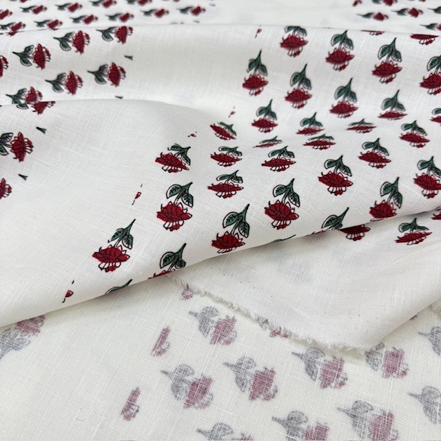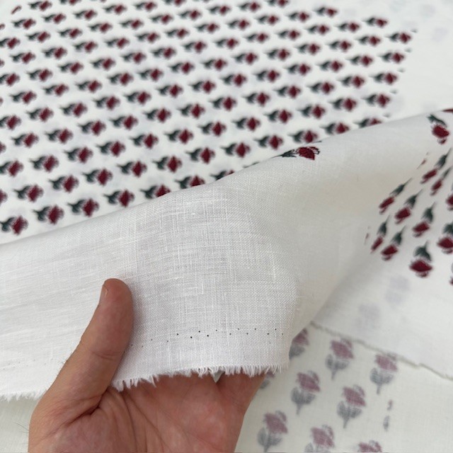 Gül Pano Desenli %100 Ham Keten Kumaş BYR