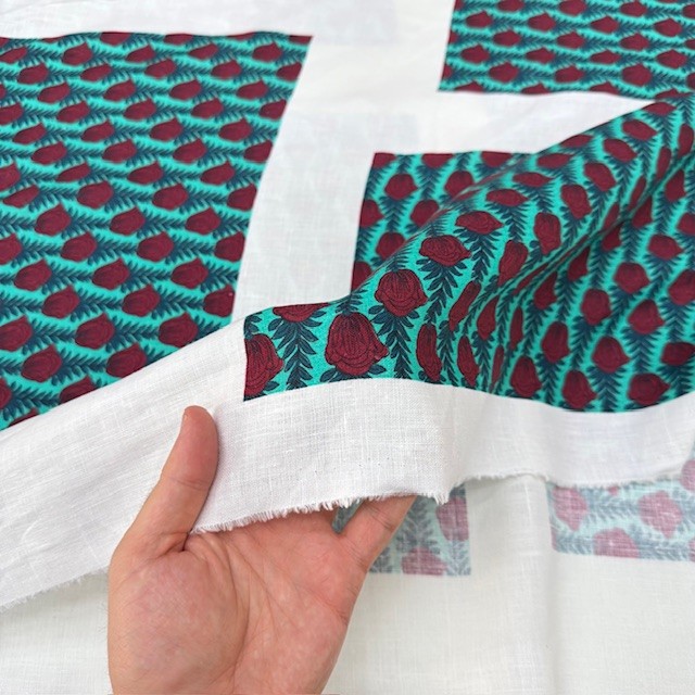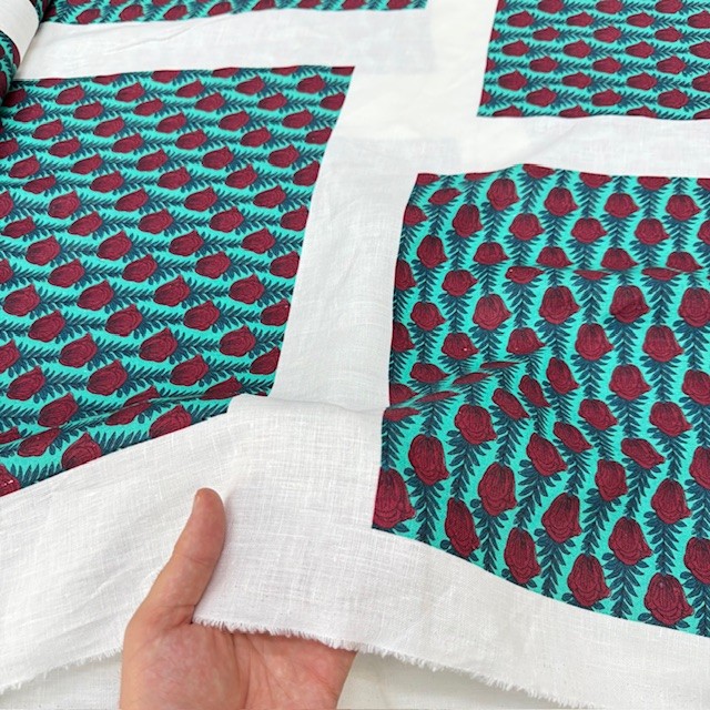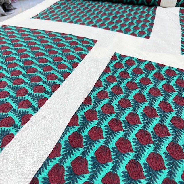 Kırmızı Gül Pano Desenli %100 Keten Kumaş BYR