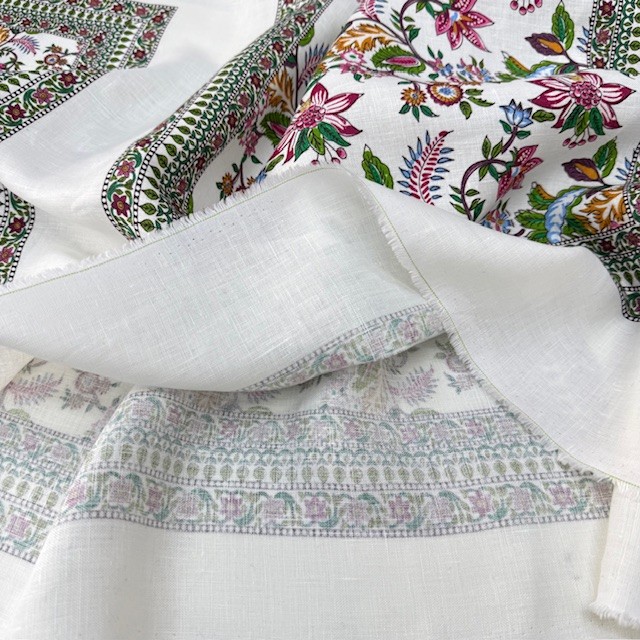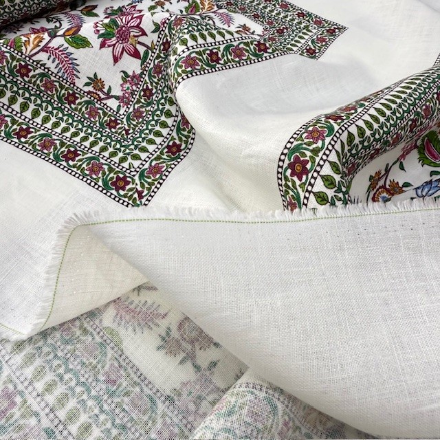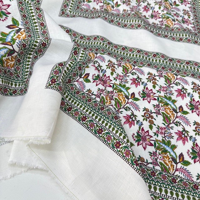 Otantik Çiçek Pano Desenli %100 Keten Kumaş BYR
