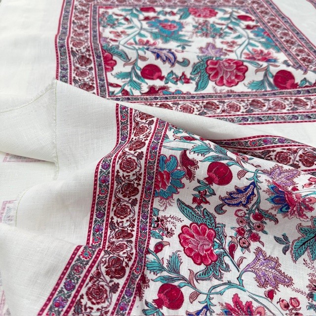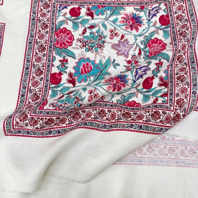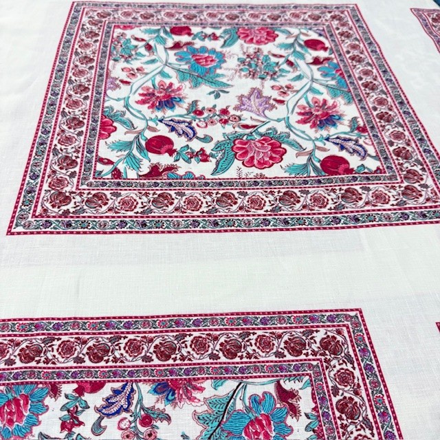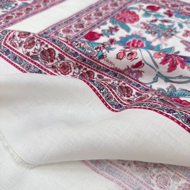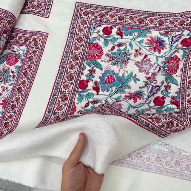 Otantik Pembe Çiçek Pano Desenli %100 Keten Kumaş BYR