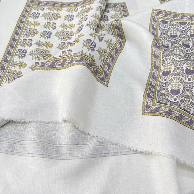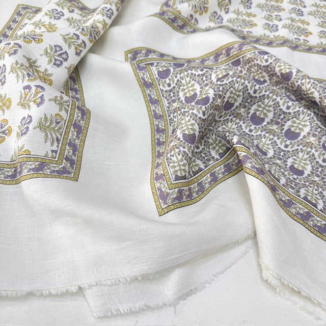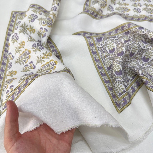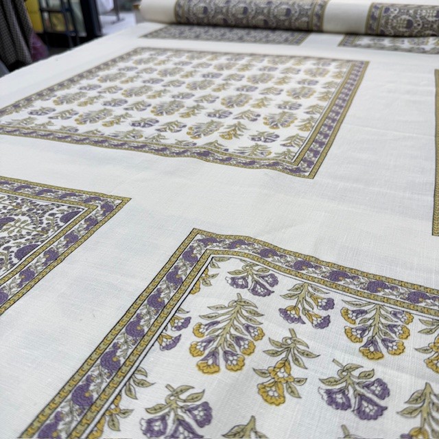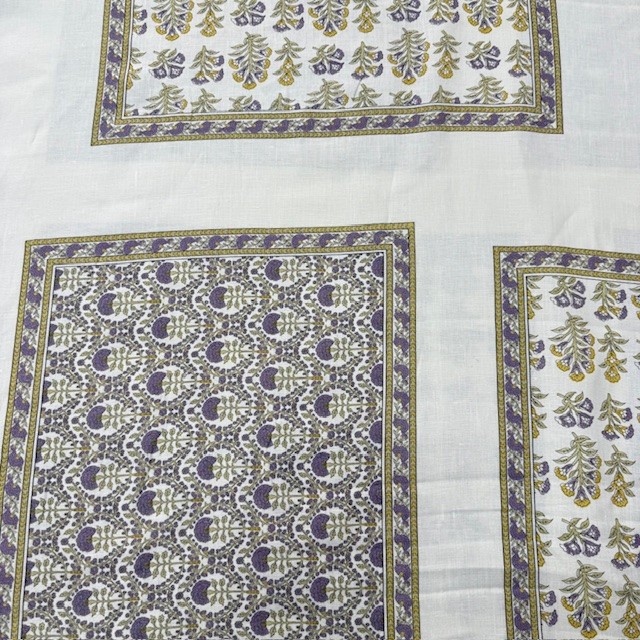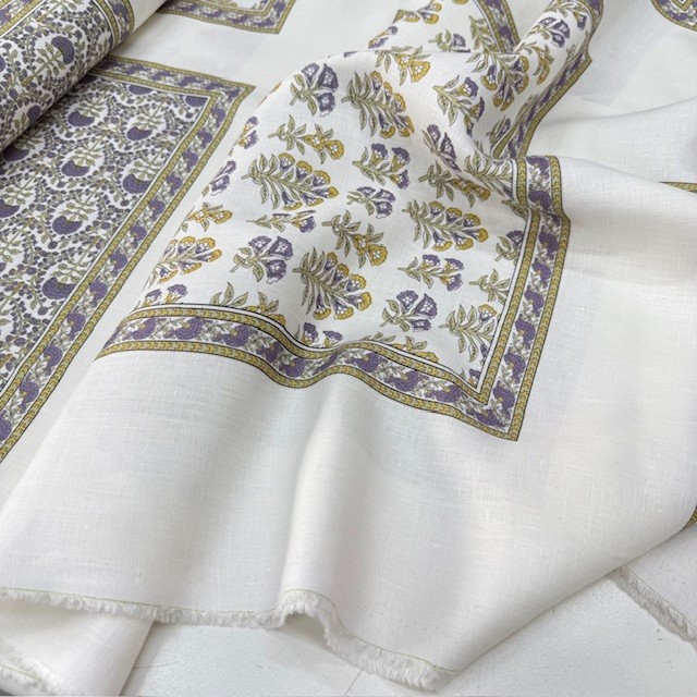 Sümbül Çiçeği Pano Desenli %100 Keten Kumaş BYR