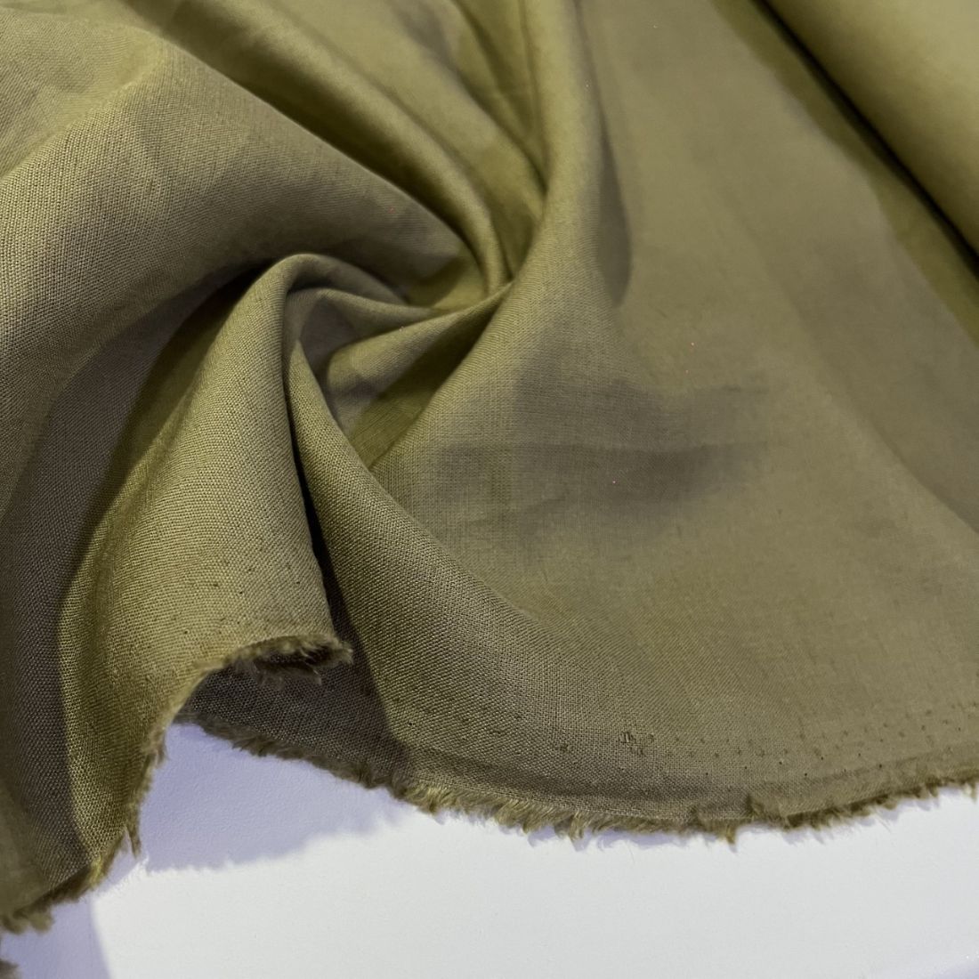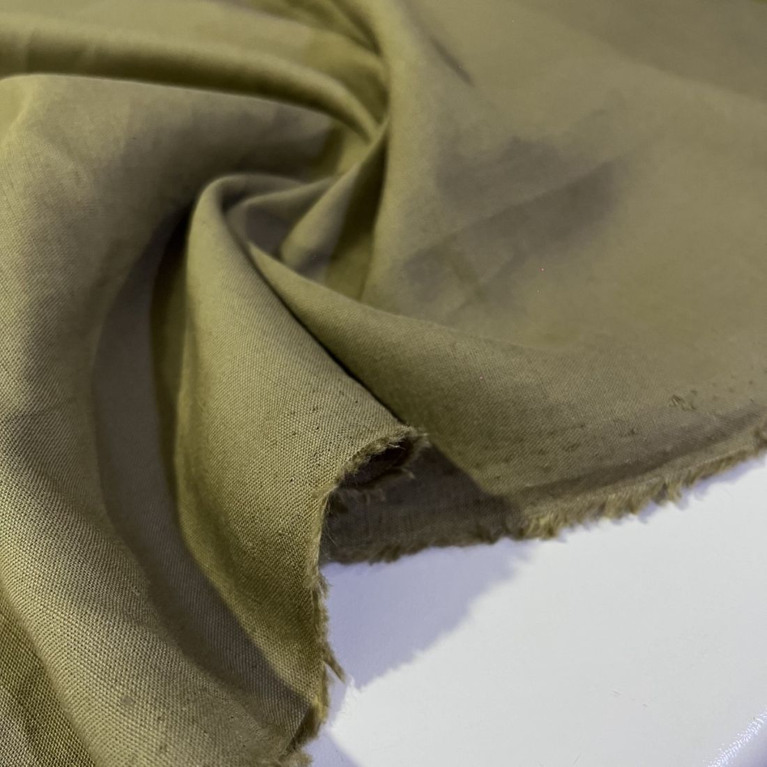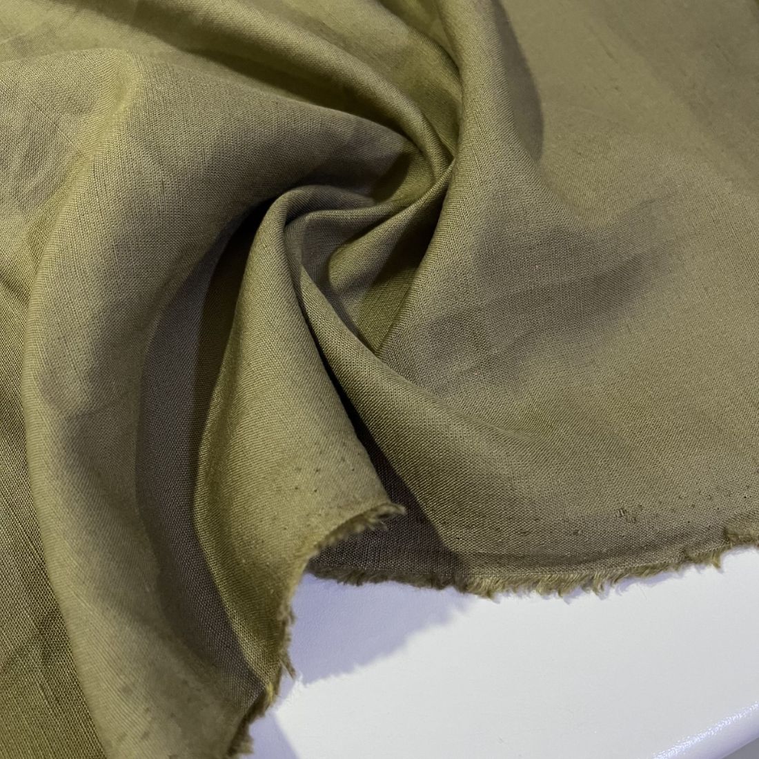 Yağ Yeşili Dökümlü Ham Keten Kumaş