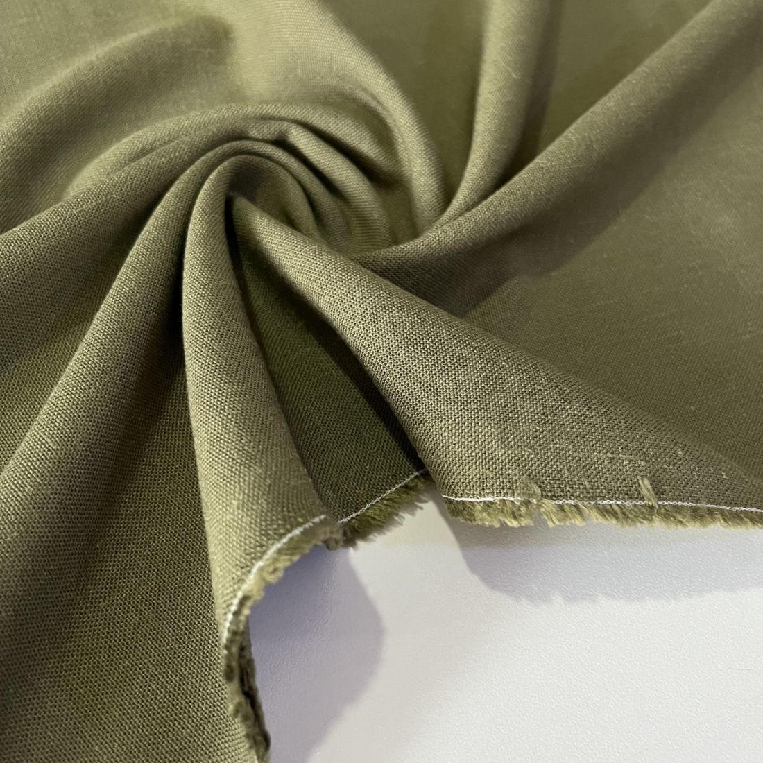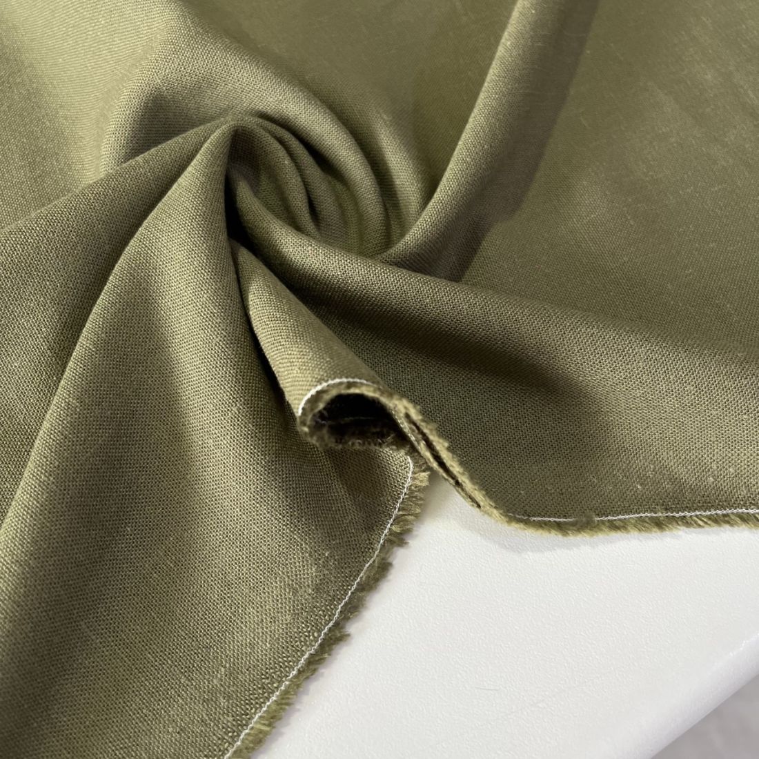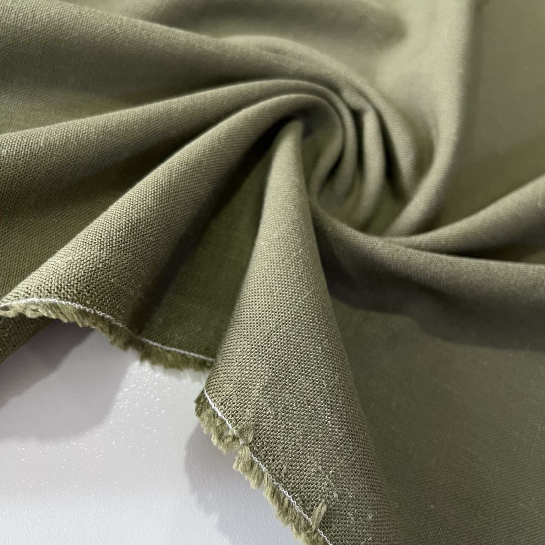 Yıkanmış Ham Keten Kumaş Askeri Yeşil