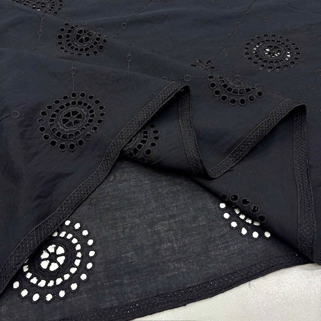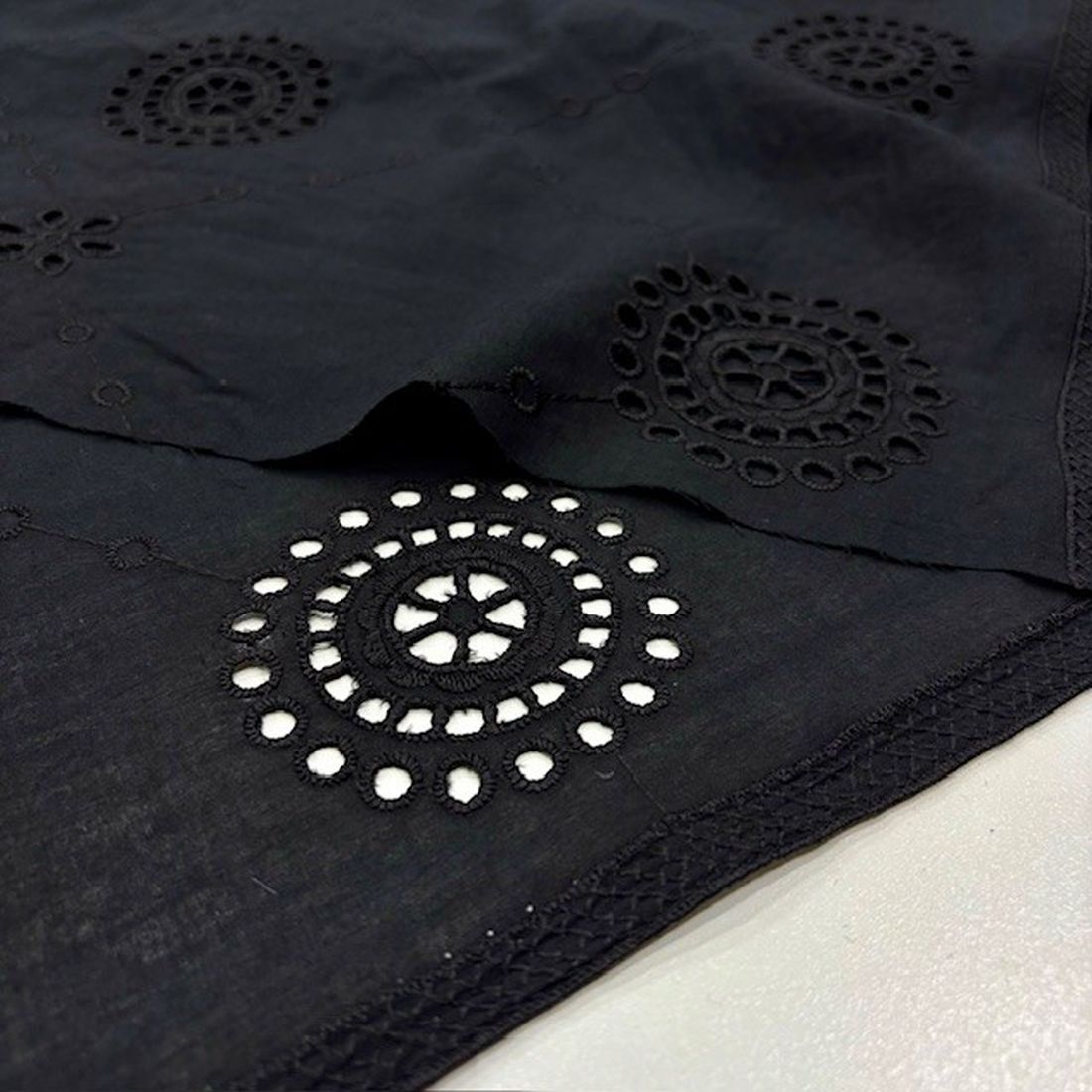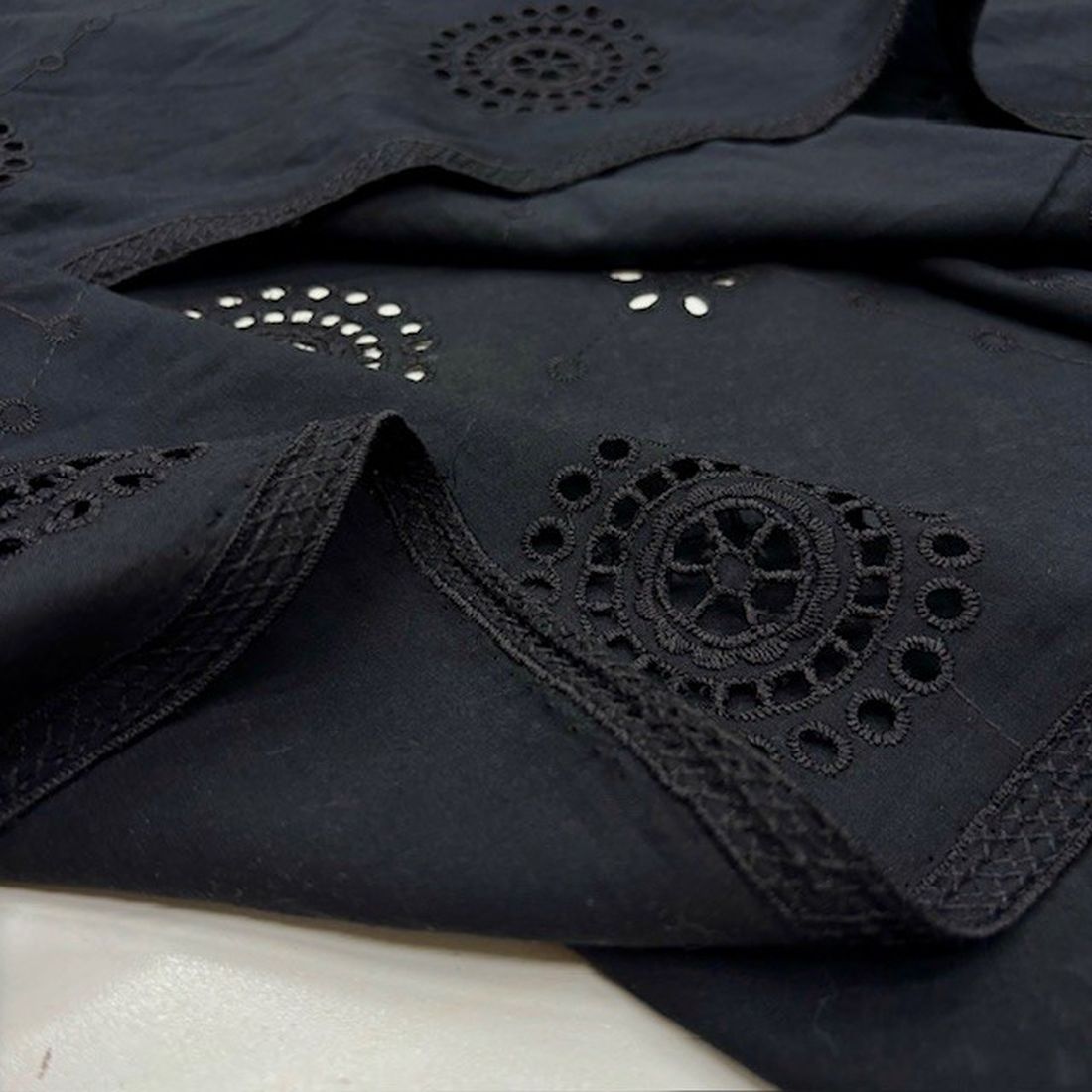 Siyah Otantik Pamuk Fisto Kumaş YVZ ; işlemeli delikleri veya nakışları olan kumaş türüdür. Genel olarak bakıldığında saf pamuk veya pamuklu doğal ürünlerdir. Kumaşın ana materyali pamuklu kumaş grubuna giren pamuk viskon veya saf pamuk vualdir. Fisto kumaşlar nakışlı görüntüsü ve pamuk içerikli oluşuyla günlük kıyafetlerde tercih edilmesinin yegane sebeplerindendir.